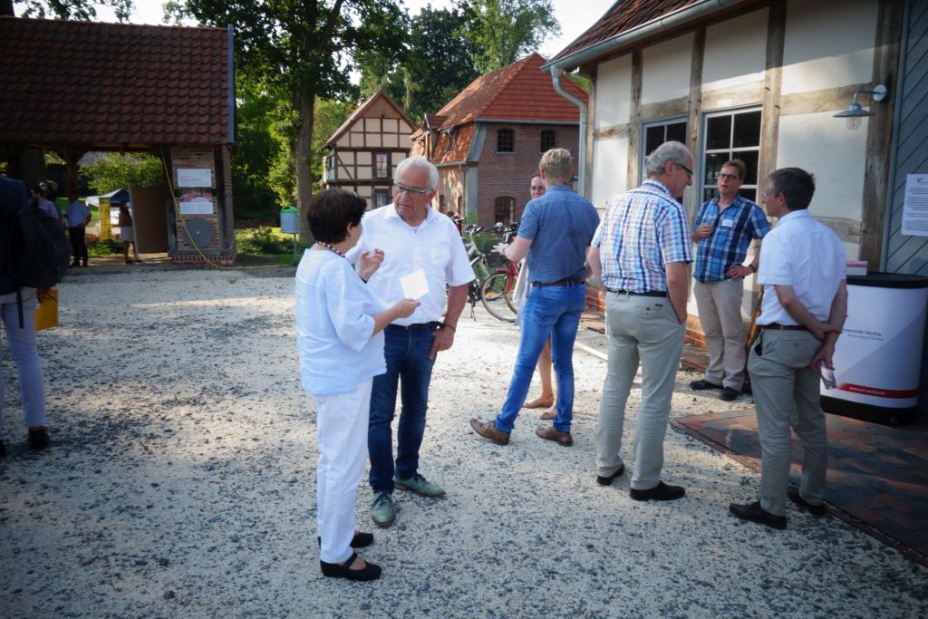 In der historischen Scheune wurde nach einer Begrüßung durch den Hausherrn Heinz von Döllen sowie Universitätspräsident Prof. Dr. Burghart Schmidt das Universitätsprojekt „Zukunft der Dörfer“ vorgestellt, das bis Sommer 2020 den Rahmen für einen Wissens- und Erfahrungsaustausch der Wissenschaft mit Bürgerinnen und Bürgern der Region „auf Augenhöhe“ schafft; Ein Austausch über Zukunftsthemen, die nah an den Lebenswelten der Menschen im Oldenburger Münsterland sind, und die sie durch ihr Engagement vor Ort mitgestalten.