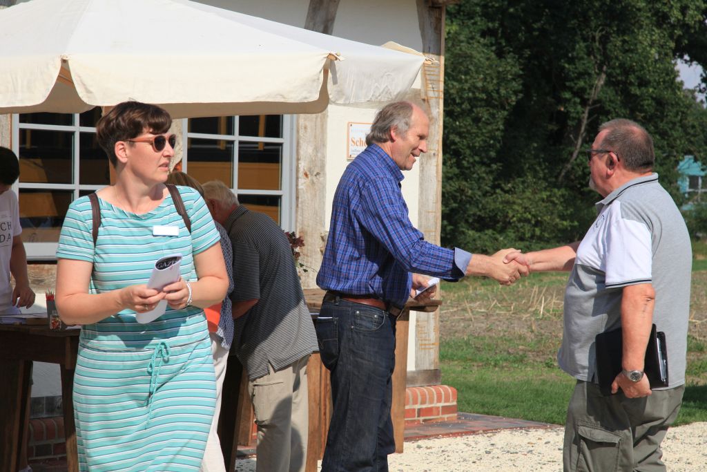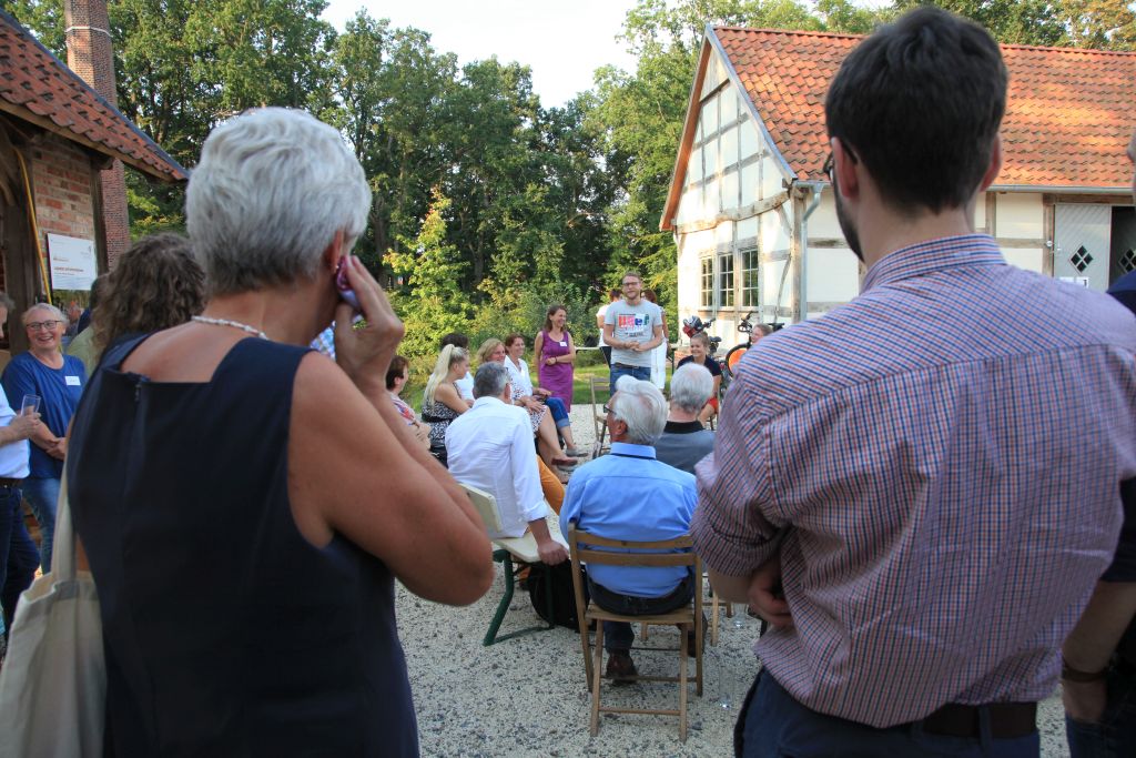 Die Gemeinde Goldenstedt lud zum Imbiss ein und Lickin‘ Blue, eine Formation der Kreismusikschule Vechta, rahmte das Programm musikalisch. Nicht zuletzt trug das spätsommerliche Ambiente im Industriedenkmal Bredemeyers Hof dazu bei, dass diese Auftaktveranstaltung bei allen Teilnehmenden großen Anklang fand und von Vielen als sehr gelungen bezeichnet wurde.
